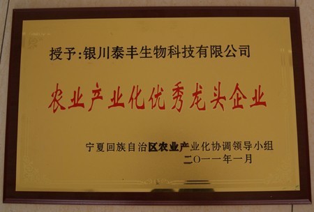 自治区农业产业化协调领导小组授予伟德betvlctor1946源于英国“农业产业化优秀龙头企业”