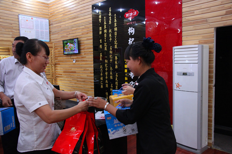中秋佳节之际,火车站店销售人员和工会送去的慰问品合影留念!