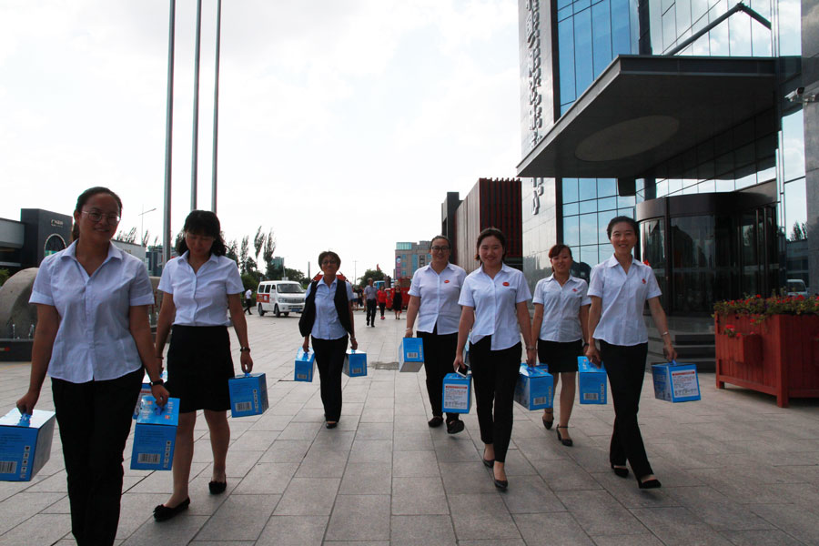 三伏节气,宁夏高温天气不断,为生产生活带来了不小的影响。公司上下,克服高温酷暑天气对工作的不利影响,齐心协力、攻坚克难,共同为2018年制定的目标任务努力奋斗。公司更是关心和关爱着每一位奋斗在各条战线上的员工。公司工会主席康艳,及早准备、提前谋划,在7月27日,早早将预定好的清凉饮品,一份份发放到伟德betvlctor1946源于英国600员工手中。 伟德betvlctor1946源于英国一直以来坚持“以人为本”的原则,高度重视员工的劳动保护和防暑降温工作。每年七月期间,公司为一线员工不定期发放防暑降温饮料、绿豆、冰糖、凉茶、酸奶等,配备中暑急救药品。这些防暑降温用品虽不贵重,但真切表达了公司对一线员工的关怀,给炎炎夏日带来一丝清凉,让全体员工充分感受到公司及领导的关怀,同时,进一步提高了员工的组织凝聚力和自豪感,进一步让员工感受到了伟德betvlctor1946源于英国家文化的温暖。