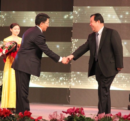 自治区农牧厅厅长赵永彪(右)为郝向峰董事长(左)颁奖
