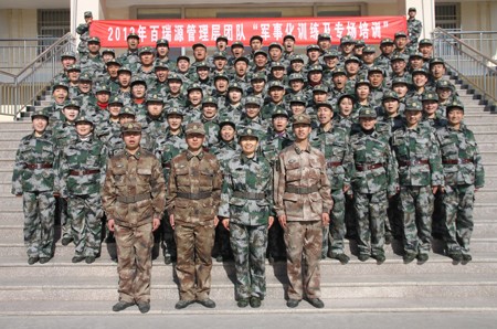期间,教练将参加培训的人员划为一个连三个排九个班,公司总经理任连长,常务副总姚卫鹤任一排排长,副总马平任二排排长,总经理助理周广红任三排排长,九个班的班长分别为詹学鹏、徐娟、郝万亮、康学文、盛颖博、焦多瑞、郝园园、郝苗苗、吴红燕。