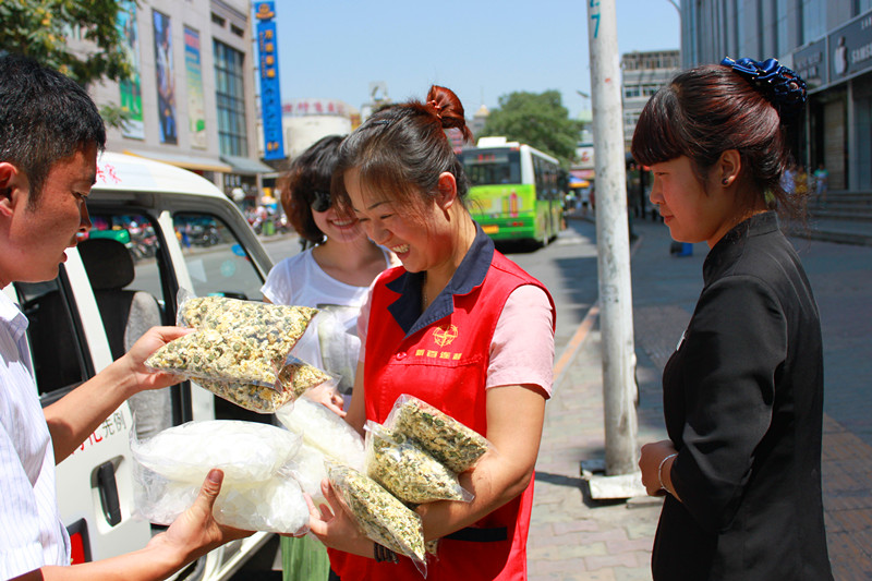 伟德betvlctor1946源于英国枸杞养生馆胜利店员工拿到公司发放的防暑饮品