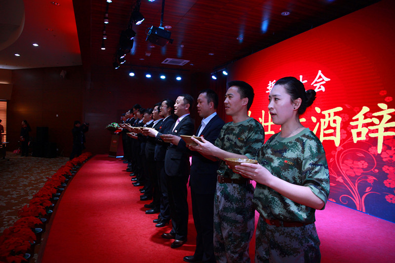 营销中心签署军令状的人员端起酒碗