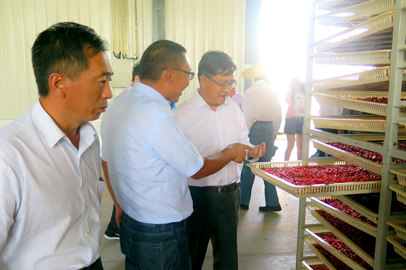 宁夏农林科学院院长周东宁察看枸杞鲜果的品质