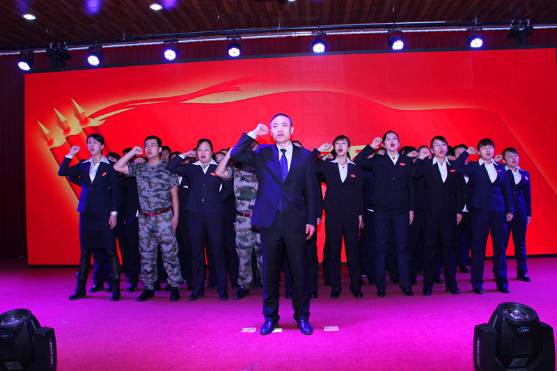 大会上,公司营销总监张国旺先生宣布营销中心誓师大会正动员令,并进行了签订责任状、致壮行酒词、宣读动员令、决誓战旗、宣誓、业绩竞标等仪式。